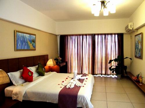 三亞玉海國(guó)際度假酒店緊鄰三亞市區(qū),背靠三亞灣新城,面向遼闊的南中國(guó)海,與著名的天涯海角、西島、南山佛教文化苑風(fēng)景區(qū)相毗臨,與佛光普照的108米南海觀(guān)音遙遙相望,依山傍海,景色秀麗。距市區(qū)僅5分鐘車(chē)程,距三亞鳳凰國(guó)際機(jī)場(chǎng)9分鐘車(chē)程,距天涯海角10分鐘車(chē)程,交通便捷,環(huán)境優(yōu)美。玉海國(guó)際度假公寓為客人提供24小時(shí)專(zhuān)職私人管家服務(wù),我們的私人管家是客人唯一面對(duì)的酒店服務(wù)人員,在客人入住酒店后,私人管家就成了客人的“家庭成員之一”,照顧他們的起居生活,幫助客人解決各種問(wèn)題,處理投訴,并使客人在店期間能享受到更多的其它服務(wù)。