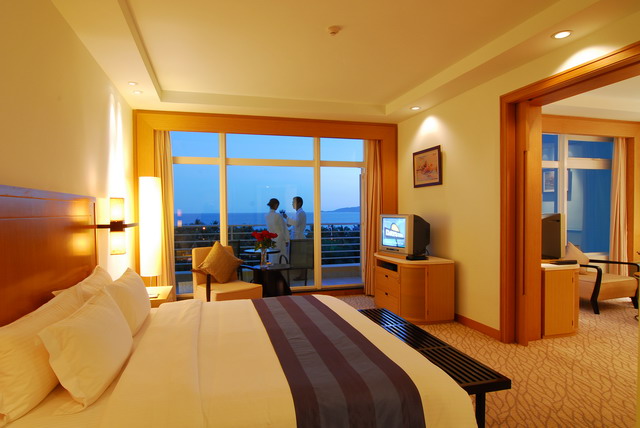高級海景房,面積42平方米,樓層3-4層,有陽臺(tái),180度海景,前面有遮擋物,大床(1.8*2米),雙床(1.2*2米),有浴缸,免費(fèi)寬帶